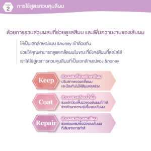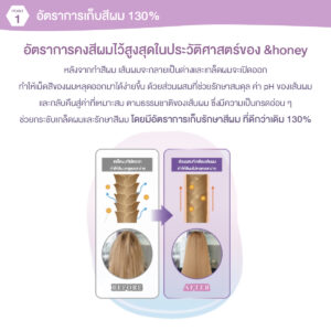 ทรีทเม้นท์ดูแลสีผมที่ผสานคุณค่าจากน้ำผึ้งเพื่อรักษาสีผมให้สวยงามและติดทนนานเป็นพิเศษ ลดปัญหาเรื่องสีผมซีดจาง และช่วยกักเก็บความชุ่มชื้น ผมเงางาม เรียบลื่น จัดทรงง่าย ให้กลิ่นหอมหวานละมุนของน้ำผึ้งลาเวนเดอร์ฝรั่งเศส สูตรเฉพาะช่วยล็อคสีผมสวย ให้สดใสยาวนาน