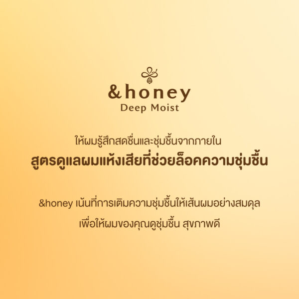แชมพูดูแลเส้นผมจากส่วนผสมออร์แกนิกที่ช่วยคงความชุ่มชื้น โดยให้ความชุ่มชื้นของเส้นผมที่เหนือกว่าแชมพูทั่วไปถึง 14% ช่วยให้เส้นผมที่มีปัญหาแห้งเสียกลับมาชุ่มชื้นจากแกนกลาง ให้กลิ่นหอมน้ำผึ้งจากดอกพีโอนี