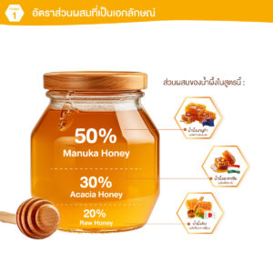 – 50% มานูก้าฮันนี่ (จากนิวซีแลนด์): มอบความชุ่มชื้นเข้มข้น