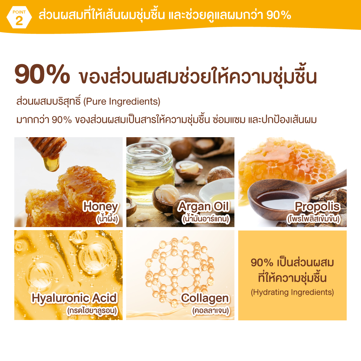 90% ของส่วนผสมช่วยให้ความชุ่มชื้น ซ่อมแซม และปกป้องเส้นผม