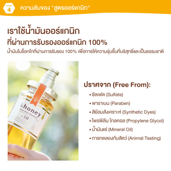 – 20% น้ำผึ้งดิบ (จากญี่ปุ่น): เติมเต็มความเงางาม