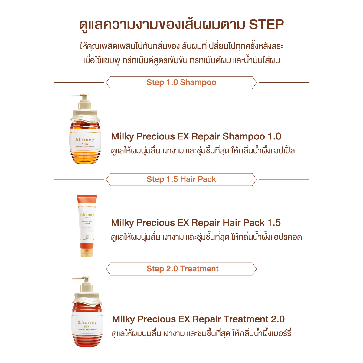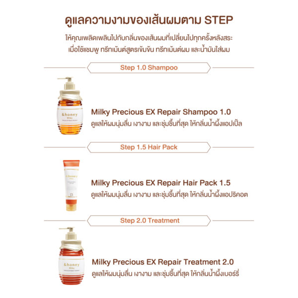 – 45% Milk Honey (นมผึ้ง): มอบความชุ่มชื้นและบำรุงผมอย่างล้ำลึก